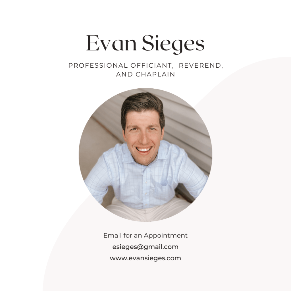 Weddings and funerals can be very stressful, and it’s something that you need to trust your officiant to get right. I can assure you that I will handle your ceremony with care and thorough preparation and professionalism. I will also work to bring your personalities and love to the forefront of the ceremony. Please feel free to read some of my former clients testimonials here.