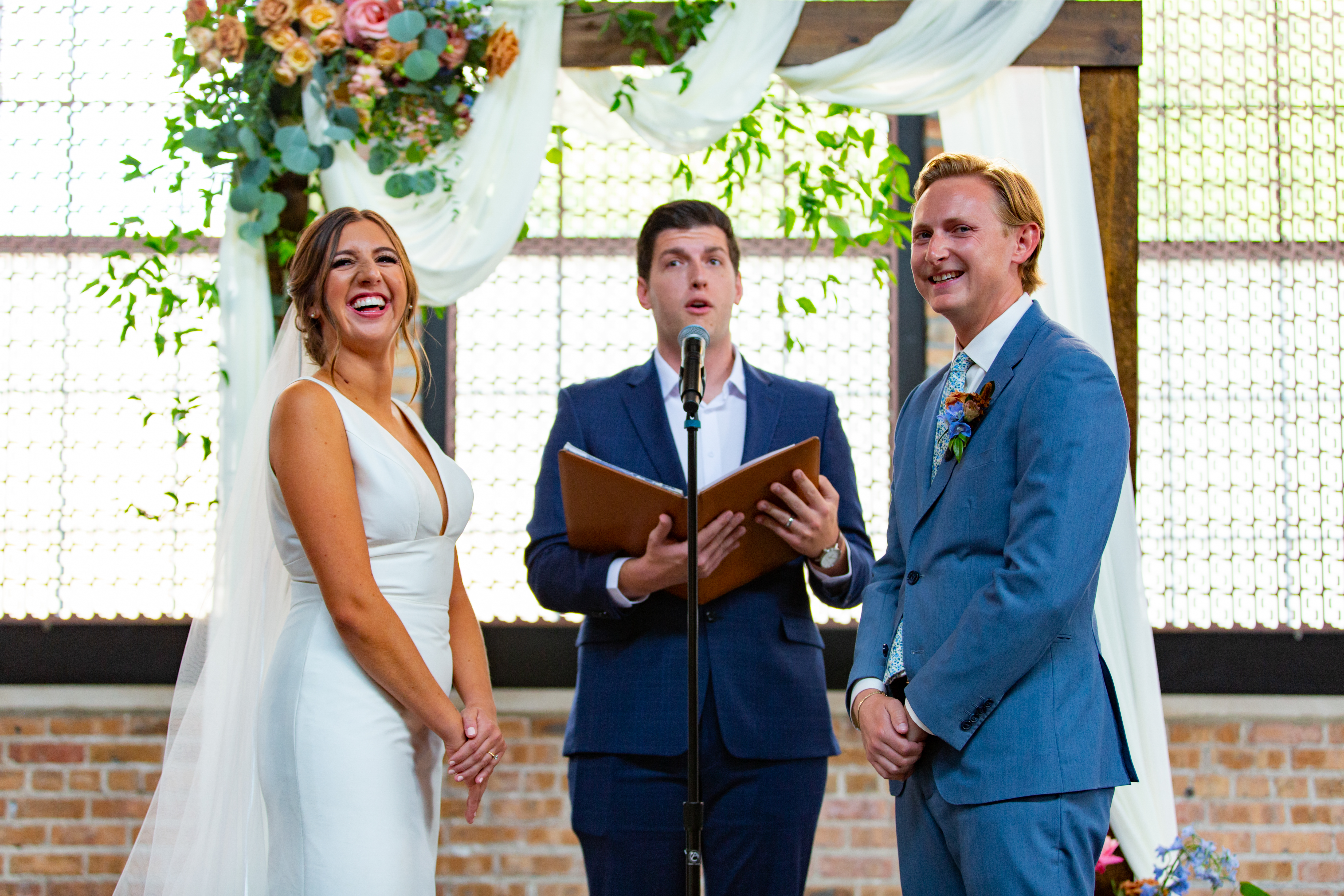 “Evan did an amazing job with our wedding! He took time to meet with us and get to know us as a couple several times through the wedding planning process, helped us both individually write our vows, and tailored our ceremony script exactly how we wanted it! He was available all day the day of the wedding and helped with rehearsal and making sure everything ran smoothly. We are not religious at all, and he was able to give us a secular ceremony that still felt incredibly professional and official. He is incredibly flexible and fun to work with, cannot recommend him enough!”